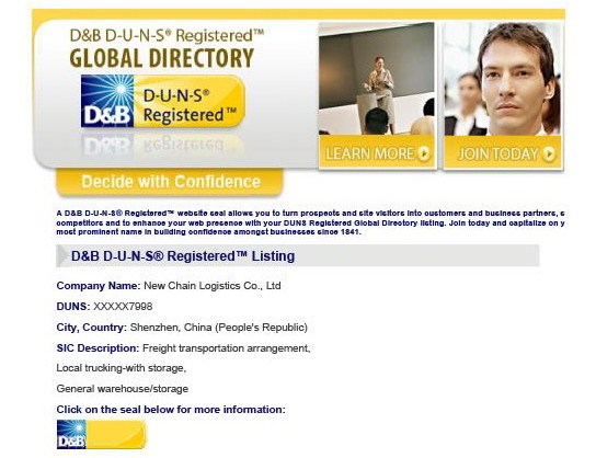 为了我司的潜在客户,更方便地查询我司的企业信息及可靠性,自2013年12月起,易脉进入美国邓白氏全球企业数据库,邓白氏是全球最大的企业数据库及信用报告集团,根据请求,邓白氏可以为我司出具企业信用报告。
