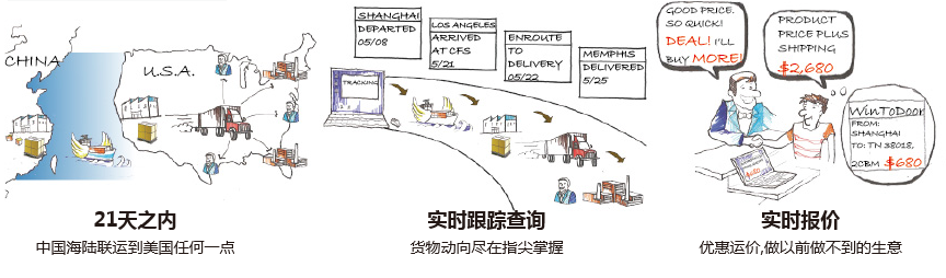 - 1、在线实时查询中国各大港口到美国任何一点的全程海陆联运费用;